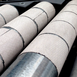 Dimple Tape (Rollers covering) consists of a treated & laminated fabric with a silicone rubber coating, offering reliable “grip” and repels a variety of substances. The embossed surface hold web and extends anti-slip properties.
